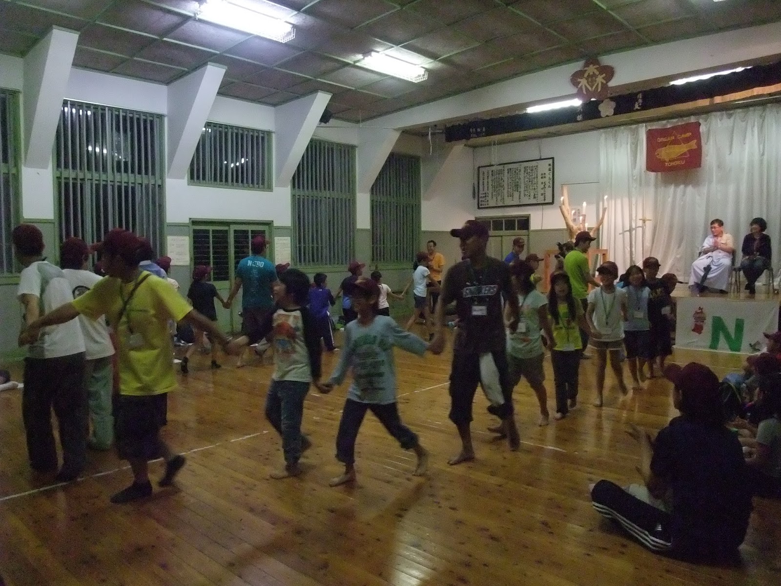 この頃から気仙沼の親御さんから心配のあまり、電話が続いて有った。「こちらも雨で大変ではありますが、大きな丈夫な建物が有りますので大丈夫です。子供さん達は元気で居られますから安心して下さい」と、親御さんを安心させるように対応した。スタッフ会議ではキャンプ中止の話は一言も出て来なかった。